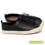Tênis Masculino Cano Baixo em Couro Preto - Codigo - 156073